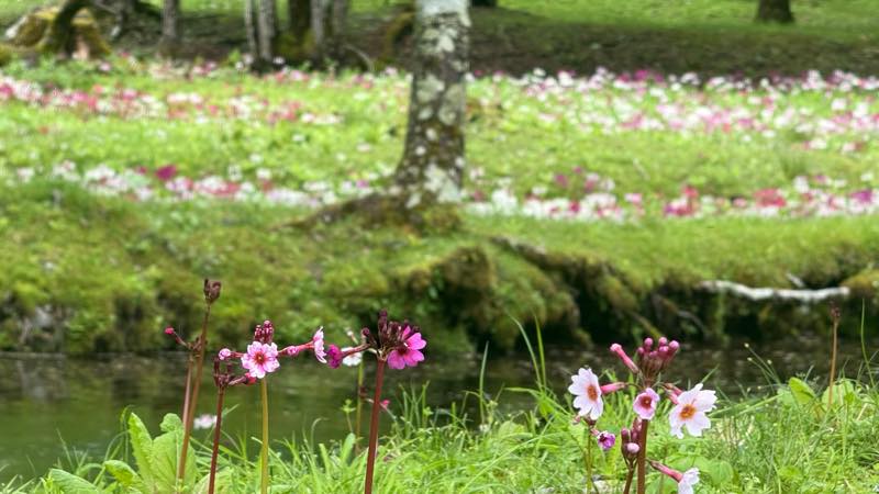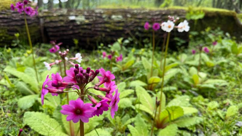 竜頭の滝の近くのクリンソウの群生地は結構咲いていて良い感じだった。