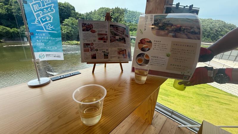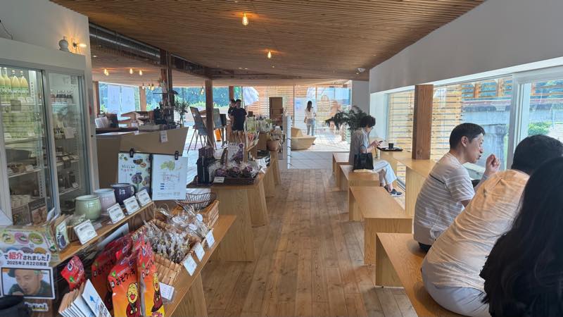 乙字ヶ滝のすぐそばに2024年9月に完成した「乙な駅たまかわ」は、玉川村を盛り上げるさまざまな店舗・サービスが集まった複合型水辺施設。隈研吾の設計らしい。
